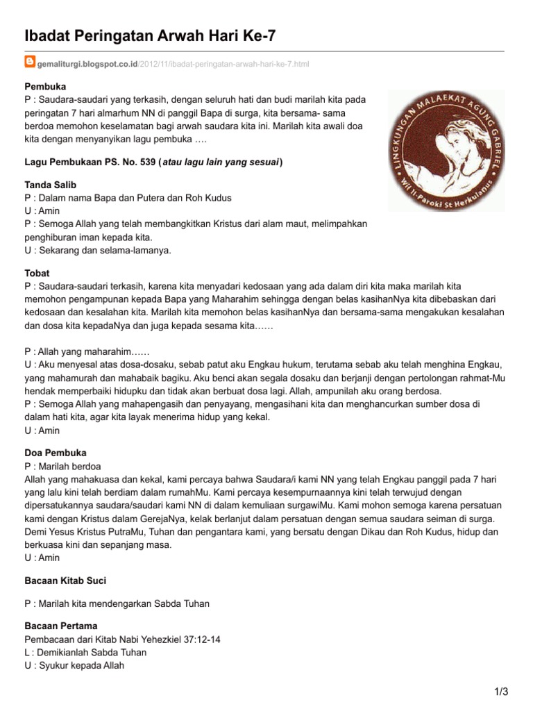 Ibadat Peringatan Arwah Hari Ke 7 Pdf